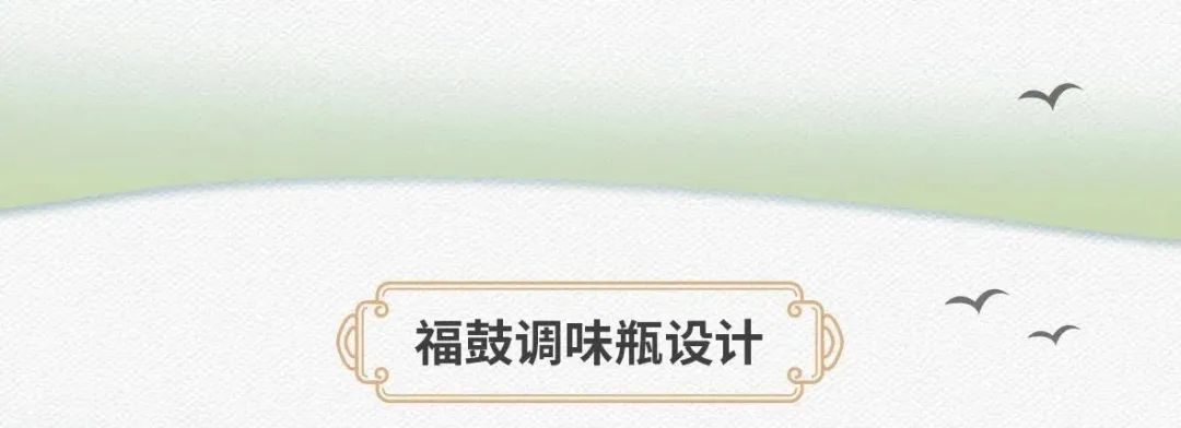 此款調(diào)味瓶設(shè)計,其主要靈感來源于松陽非遺福鼓制作技藝,提取其元素將其設(shè)計成調(diào)味瓶,在材質(zhì)上陶瓷亞光搭配描金工藝,簡潔大氣。具核非遺文化元素又有很強的實用意義,是一個很好的衍生品設(shè)計。