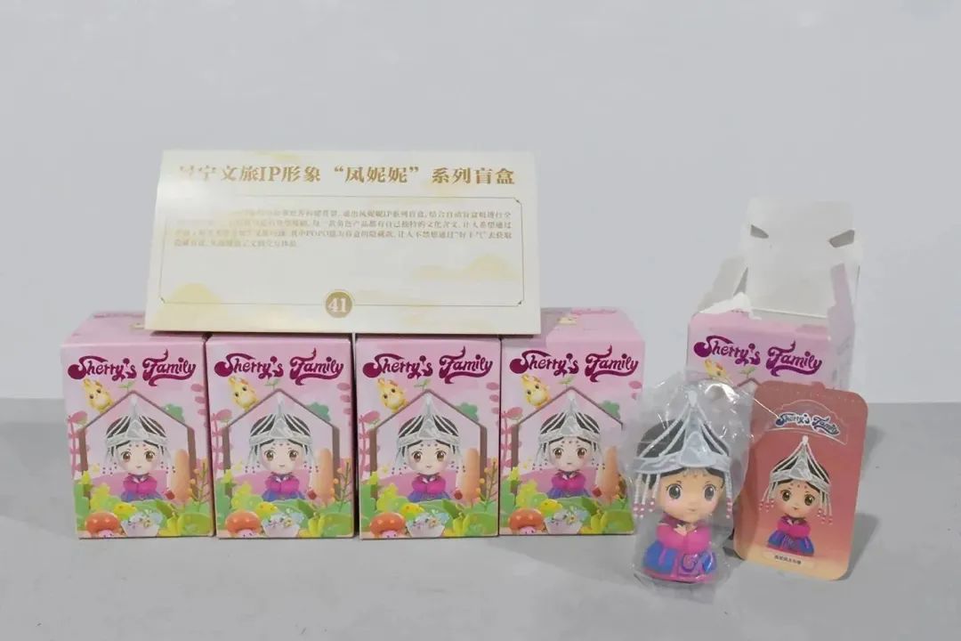 創(chuàng)意說明:基于景寧文旅IP獨特的故事世界構(gòu)建背景,退出鳳妮妮IP系列盲盒,結(jié)合自動盲盒機進行全域范圍內(nèi)植入,以精致可愛的外型吸睛,每一款角色產(chǎn)品都有自己獨特的文化含義,讓人希望通過產(chǎn)品了解更多畬鄉(xiāng)景寧文旅內(nèi)涵。其中POPO崽為盲盒的隱藏款,讓人不禁想通過“好手氣”去獲取隱藏盲盒,從而增加了文創(chuàng)交互體驗。